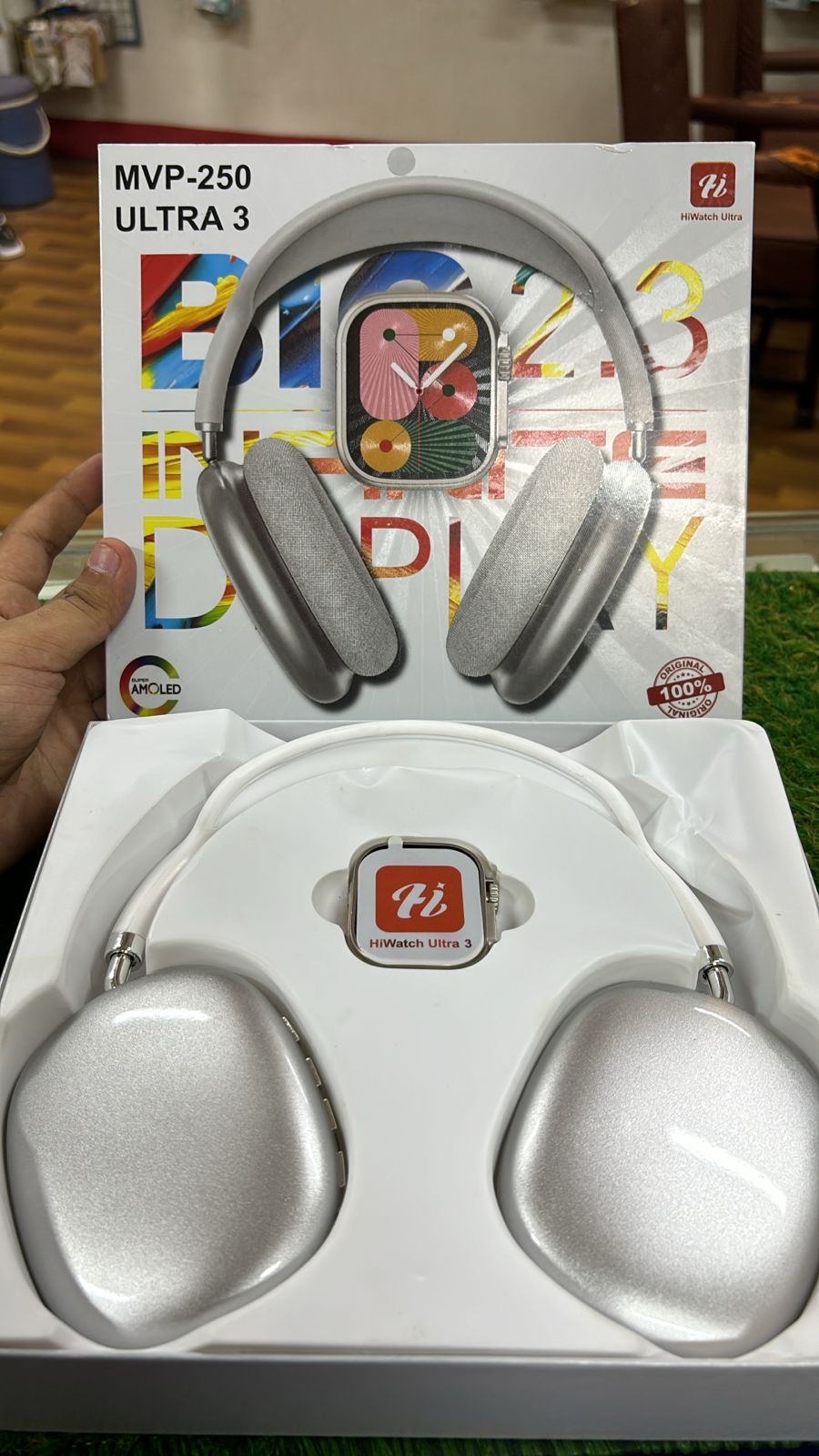 Experience the ultimate smart wearable bundle with the Hiwatch Ultra MVP-250, a stylish smartwatch from the Ultra 3 series paired with premium wireless headphones. Designed for performance and elegance, this all-in-one combo features a stunning display, high-speed performance, and seamless Bluetooth connectivity to help you stay ahead — whether you're working out, taking calls, or managing your day.